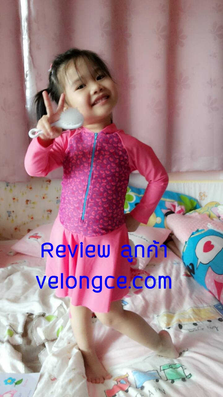 Review ชุดว่ายน้ำเด็กแขนยาวกระโปรงมีซิปชิ้นเดียว สีสันสดใส velongce.jpg