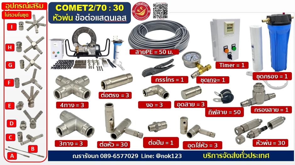 ชุดพ่นหมอกแรงดันสูง 30 หัวพ่น ข้อต่อแสตนเลส ปั๊มCOMETอิตาลี