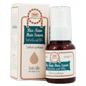 ผลิตภัณฑ์บำรุงเส้นผม (ไม่ต้องล้างออก) บำรุงเส้นผม ทำให้รากผมแข็งแรง ชะลอการหลุดร่วง ด้วยส่วนประกอบของน้ำมันรำข้าวออร์แกนิค และสารสกัดบัวบก ผลิตด้วยนาโนเทคโนโลยีที่ช่วยเพิ่มการดูดซึมและทำให้สมุนไพรออกฤทธิ์ได้ดียิ่งขึ้น