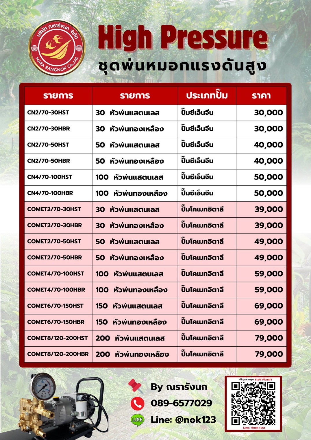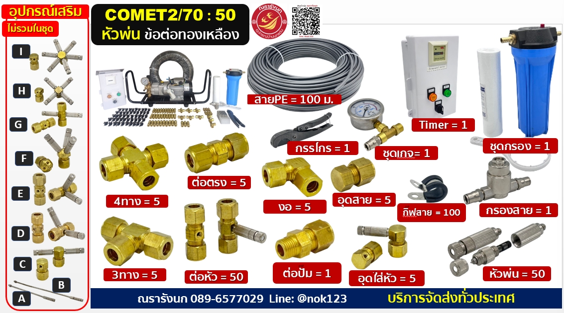 ชุดพ่นหมอกแรงดันสูง 50หัวพ่น ข้อต่อทองเหลือง ปั๊มCOMETอิตาลี