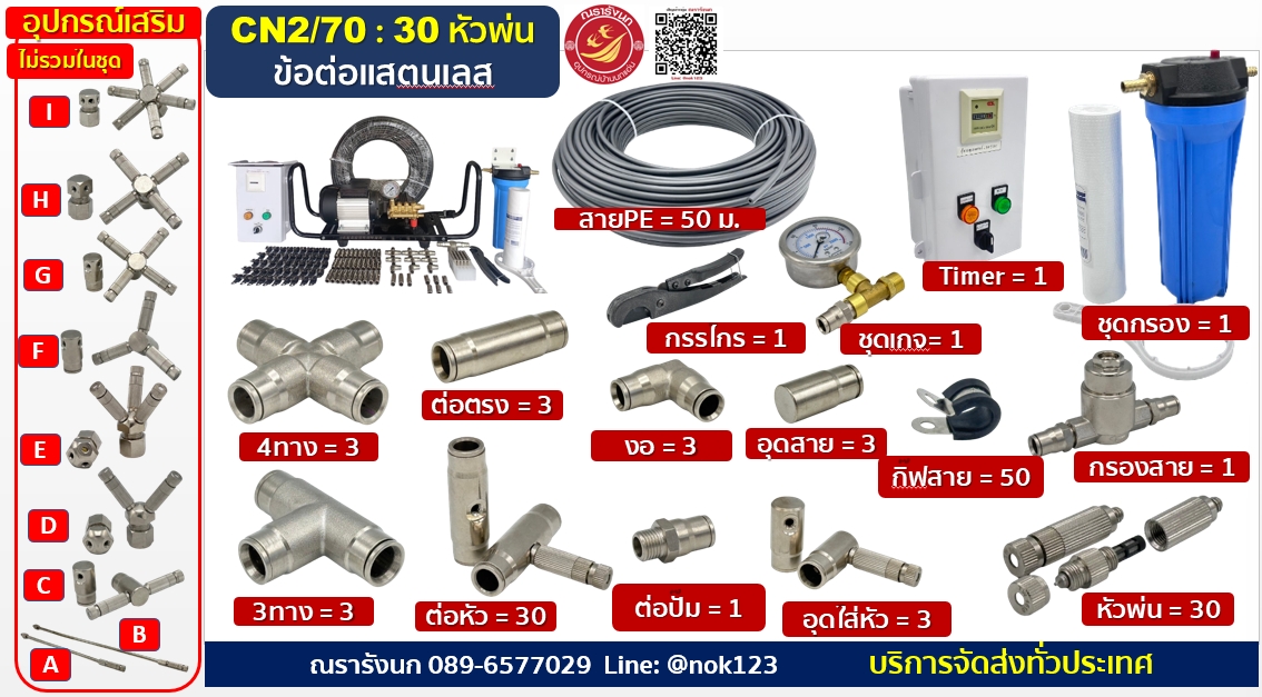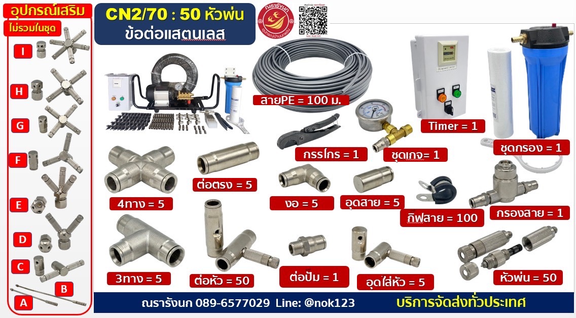 ชุดพ่นหมอกแรงดันสูง 50 หัวพ่น ข้อต่อแสตนเลส จัดครบชุด