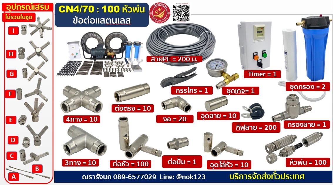 ชุดพ่นหมอกแรงดันสูง 100 หัวพ่น ข้อต่อแสตนเลส จัดครบชุด