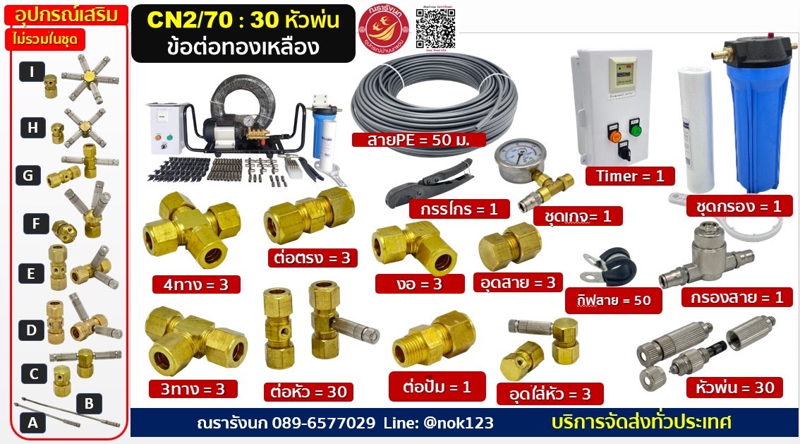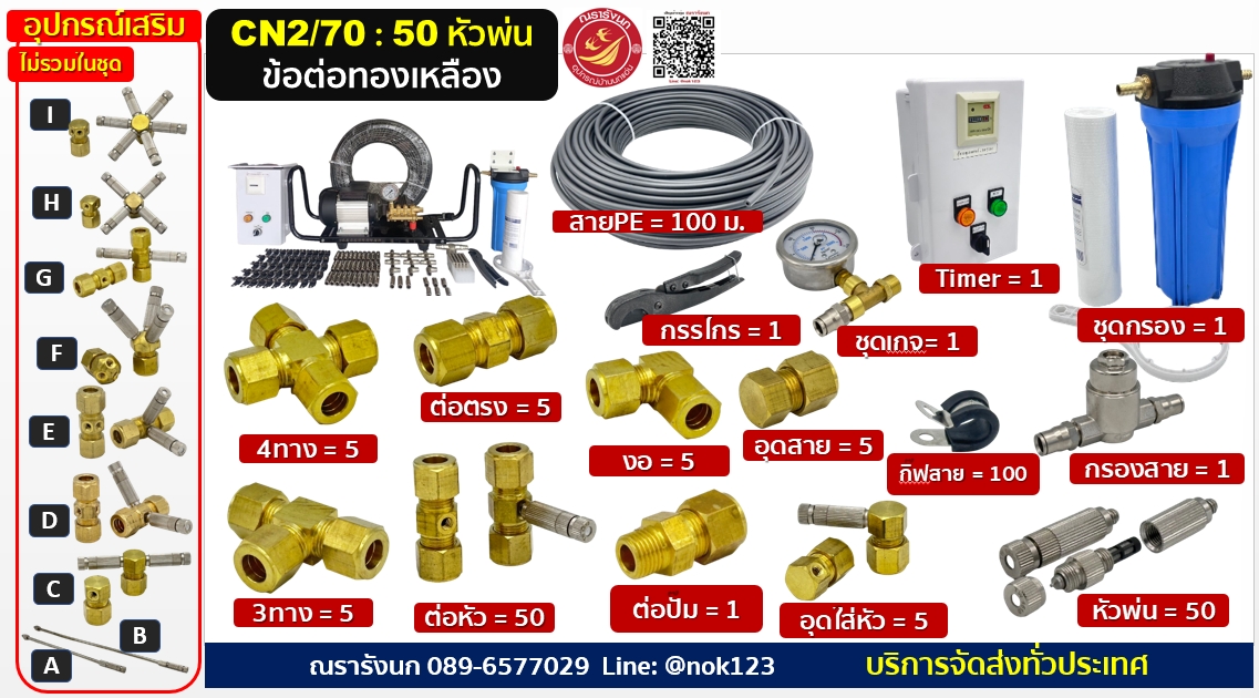 ชุดพ่นหมอกแรงดันสูง 50 หัวพ่น ข้อต่อทองเหลือง จัดครบชุด