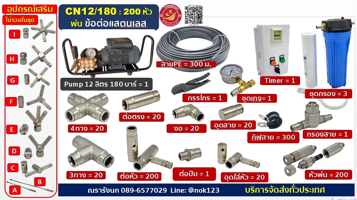 ชุดพ่นหมอกแรงดันสูง 200หัวพ่น ข้อต่อแสตนเลส ปั๊มCOMETอิตาลี