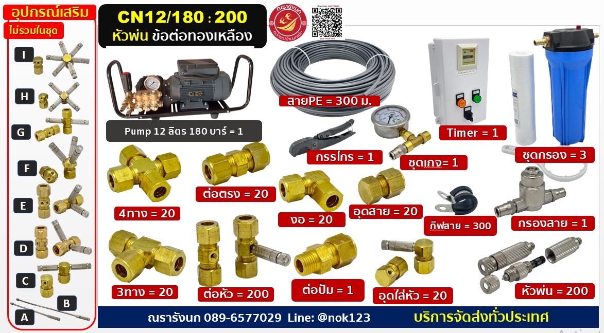 เครื่องพ่นหมอกปั๊มแรงดันสูง (จัดครบชุด 30-200 หัวพ่น)