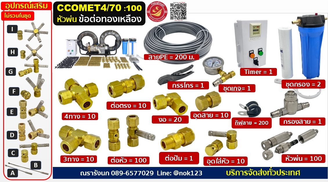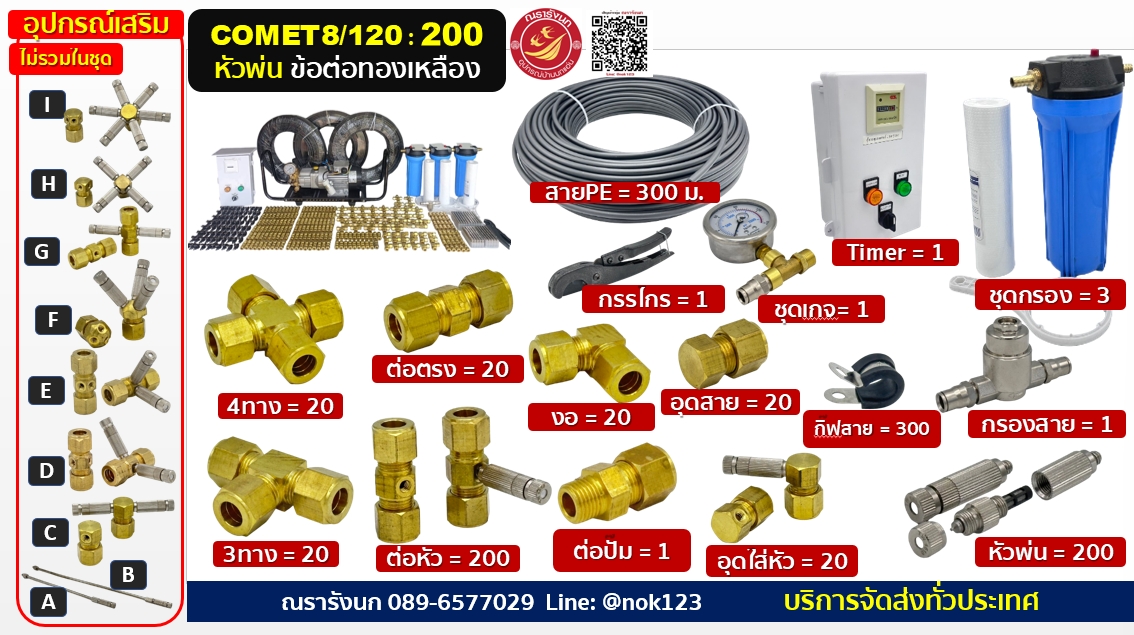 ชุดพ่นหมอกแรงดันสูง 200 หัวพ่น ข้อต่อทองเหลือง ปั๊ม COMETอิตาลี