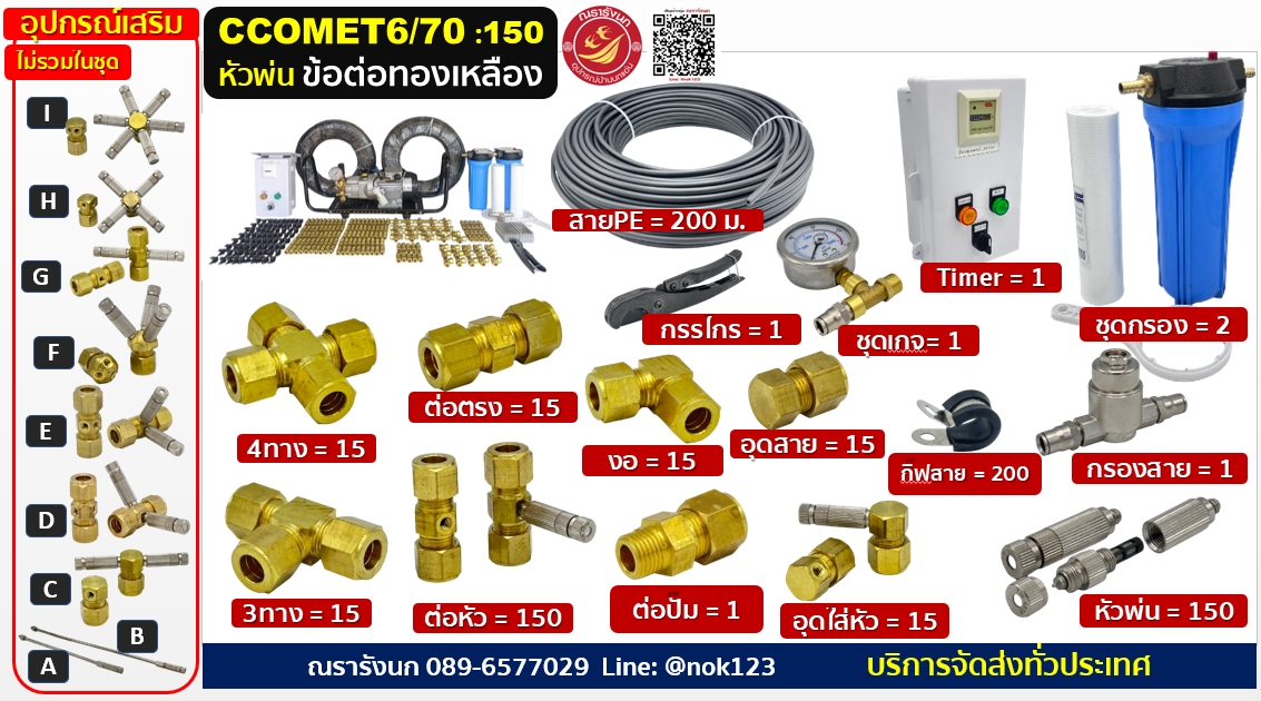 ชุดพ่นหมอกแรงดันสูง 150 หัวพ่น ข้อต่อทองเหลือง ปั๊มCOMETอิตาลี